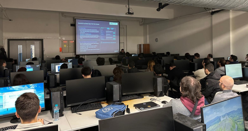 Siemens Türkiye ekibinden Teknik İş Geliştirme Yöneticisi Sn. Batuhan Uzaslan, 15 Aralık 2025 tarihinde öğrencilerimizle bir araya gelerek, dünya genelinde düzenlenen Global SIMARIS Design Yarışması hakkında bilgi verip, uluslararası düzeyde kendilerini gösterme ve Siemens’in global teknik topluluğuyla etkileşim kurma fırsatlarını tanıttı. Ayrıca etkinlik kapsamında, Teknik Satış ve İş Geliştirme iş kolunun kapsamı, kariyer fırsatları ve öğrenciler için sunulan staj ve part-time çalışma imkanları detaylı şekilde tanıtıldı. Programın teknik bölümünde, SI EA TIP bünyesinde yürütülen çalışmalar üzerinden enerji sistemlerinin güvenliği, verimliliği ve sürekliliği açısından kritik öneme sahip konular ele alındı. Proje dizaynı, şartname süreçleri, ekipman seçimi, yük akışı ve kısa devre analizleri ile selektivite çalışmaları üzerine sunum gerçekleştirildi. Ardından Siemens Teknik Satış Destek Yöneticisi Özlem Alarçin, Başmühendis Yasemin Uluhan Yücel ve SCADA Sistem Mühendisi Emre Yeğen bölümümüzü ziyaret ederek olası işbirlikleri ve gelecek çalışmalar değerlendirildi.